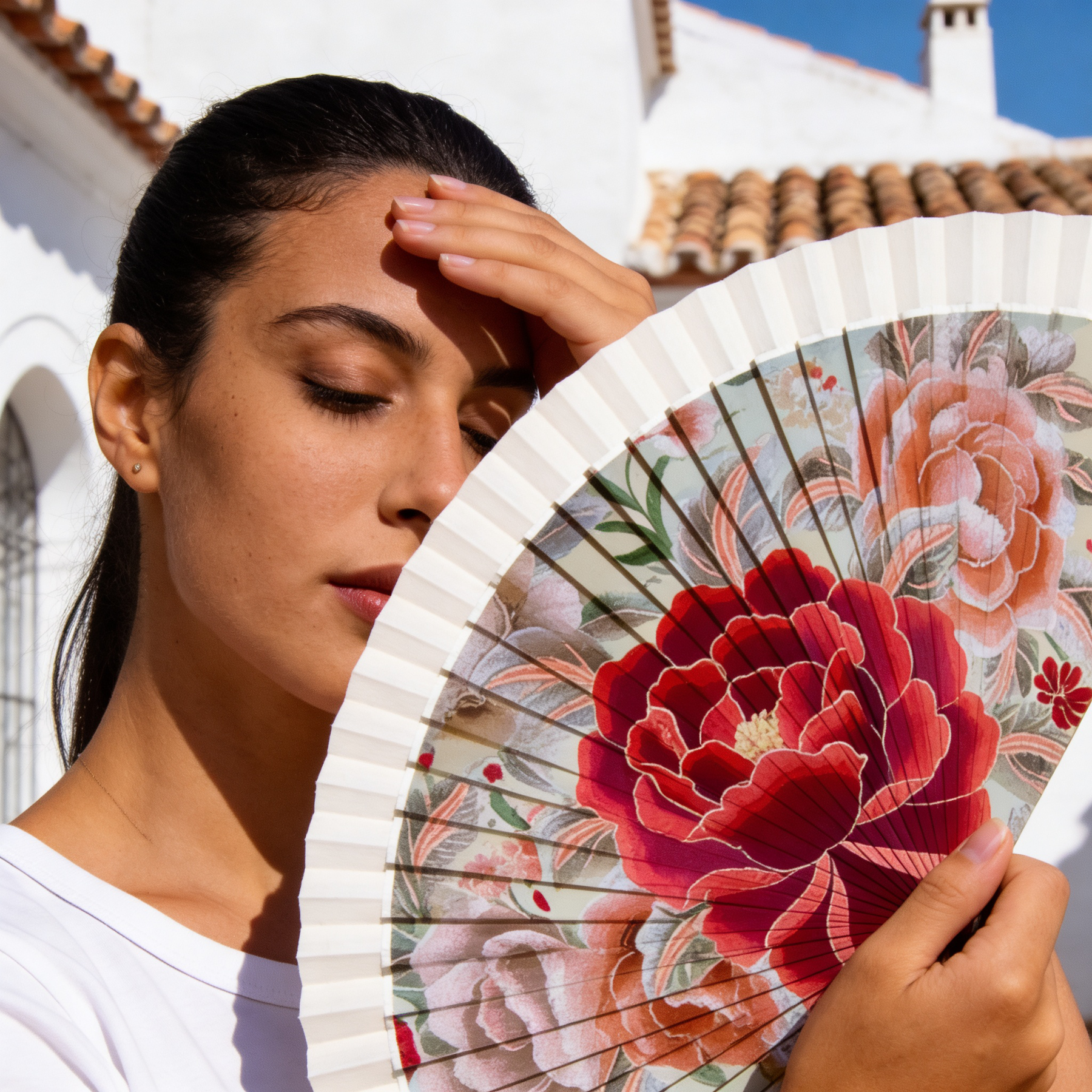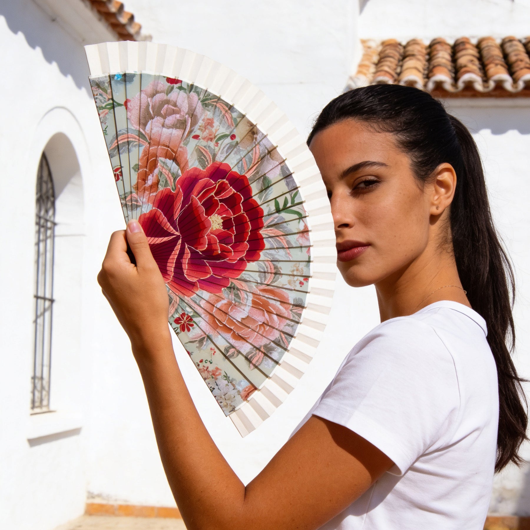 Abanico Mantón Manila PEONÍA ROJA