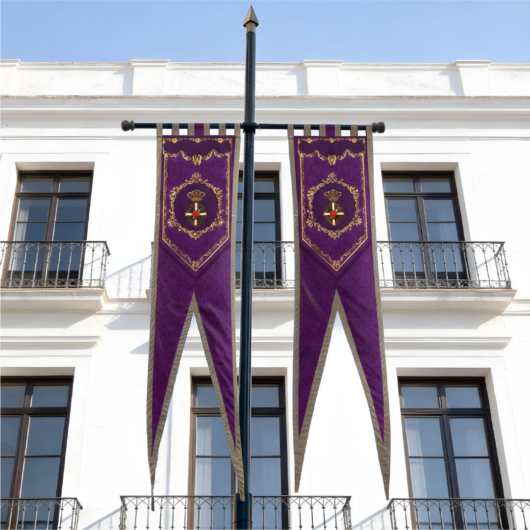 Renueva el entorno urbano o la fachada de tu sede con nuestros Gallardetes Verticales Personalizados. La opción ideal para embellecer fachadas, farolas y columnas con tu escudo, logotipo o imagen corporativa.
