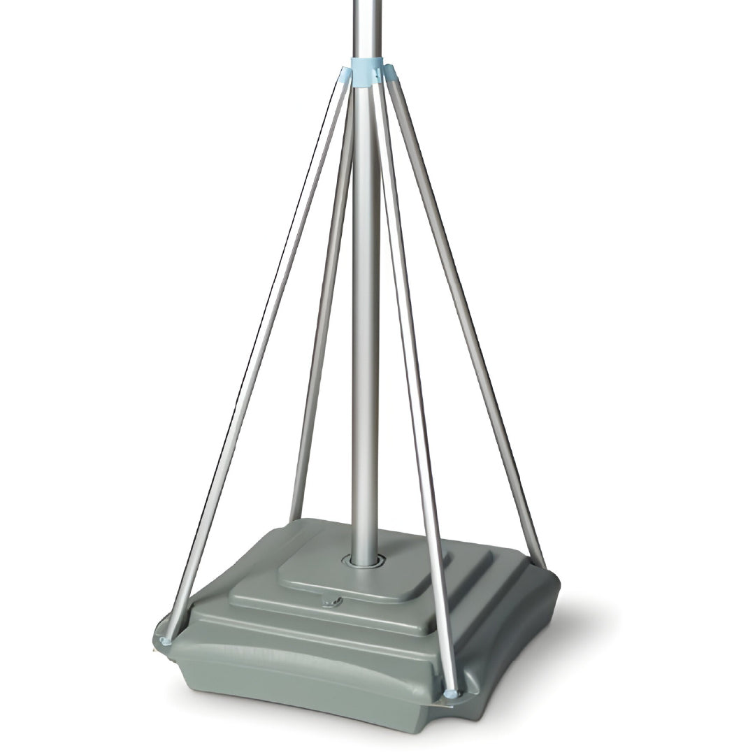 Incluye base cuadrada de 70 x 70 x 20 cm., rellenable con agua o arena (hasta 70 litros), que aporta gran estabilidad para uso en exterior.